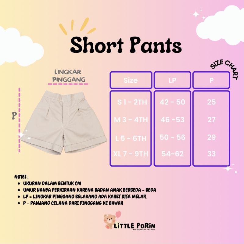 Little Porin - Celana Pendek Anak Perempuan - Shortpants Anak - Bawahan Anak - Celana Main Anak Perempuan