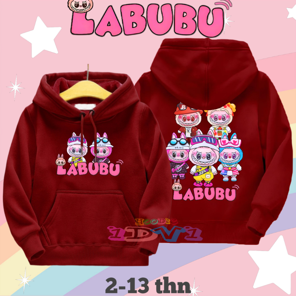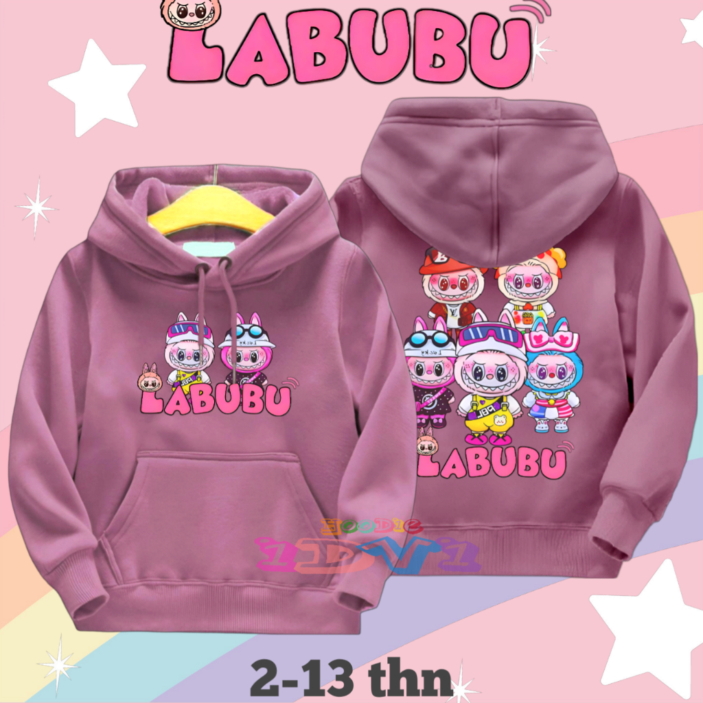 Jaket Hoodie Anak Perempuan Labubu Sweater Hoddy Anak Cewek Umur 2 3 4 5 6 7 8 9 10 11 12 13 Tahun