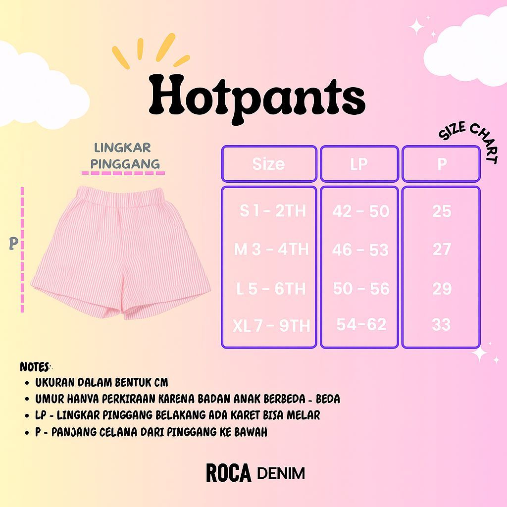 Celana Pendek Anak Perempuan Stripe 1-8 Tahun Hotpants Motif Garis Bahan Semiwol Adem
