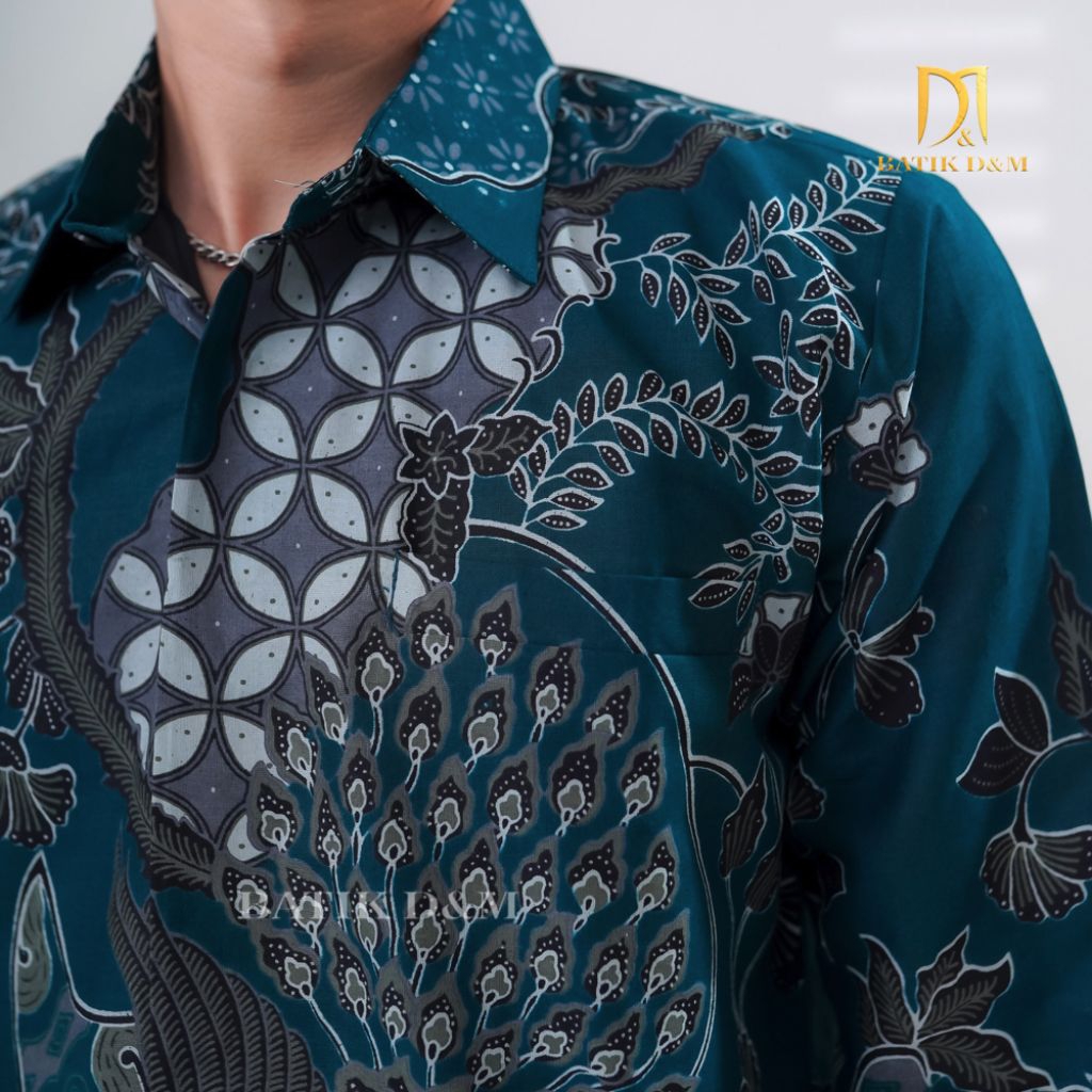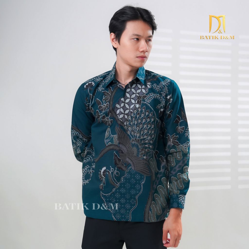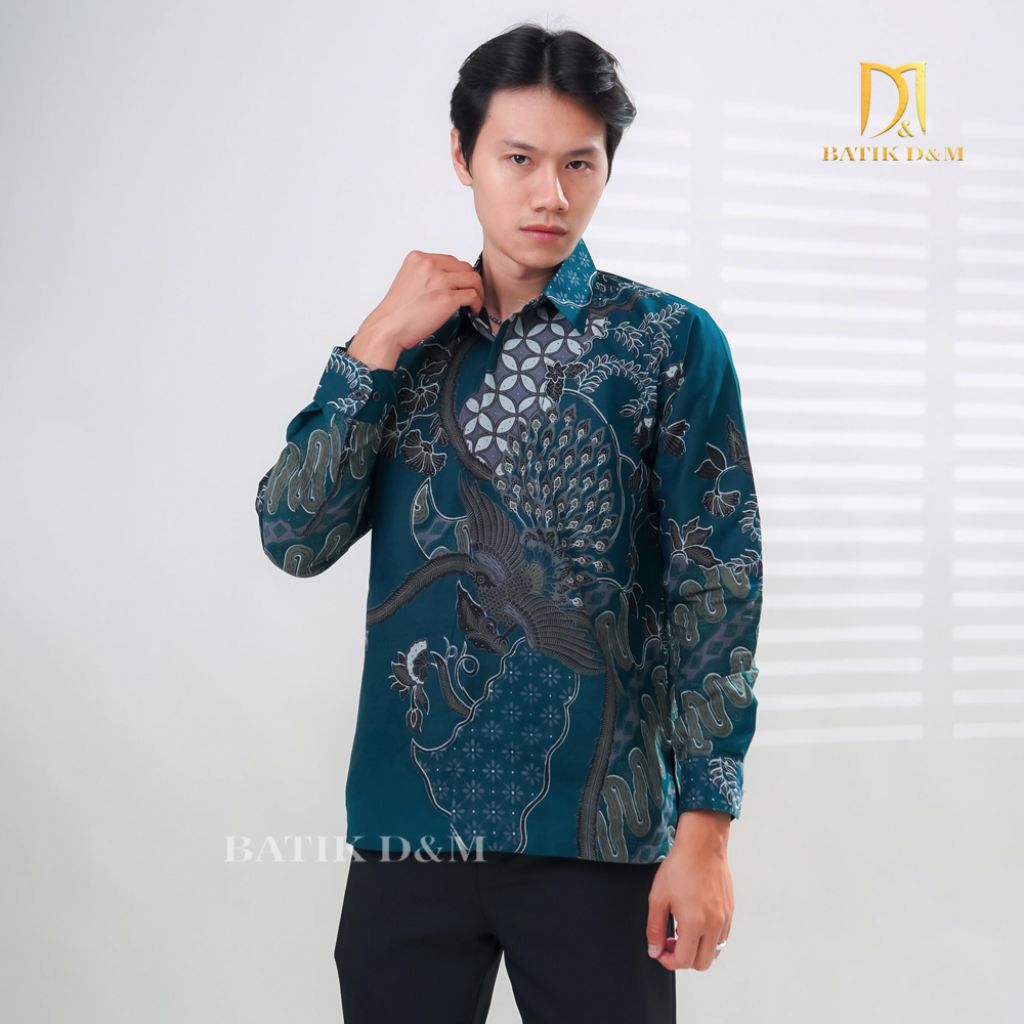 Batik D&M- Danendra Emerald Green Batik Pria Lengan Panjang Bahan Katun Lapis Furing