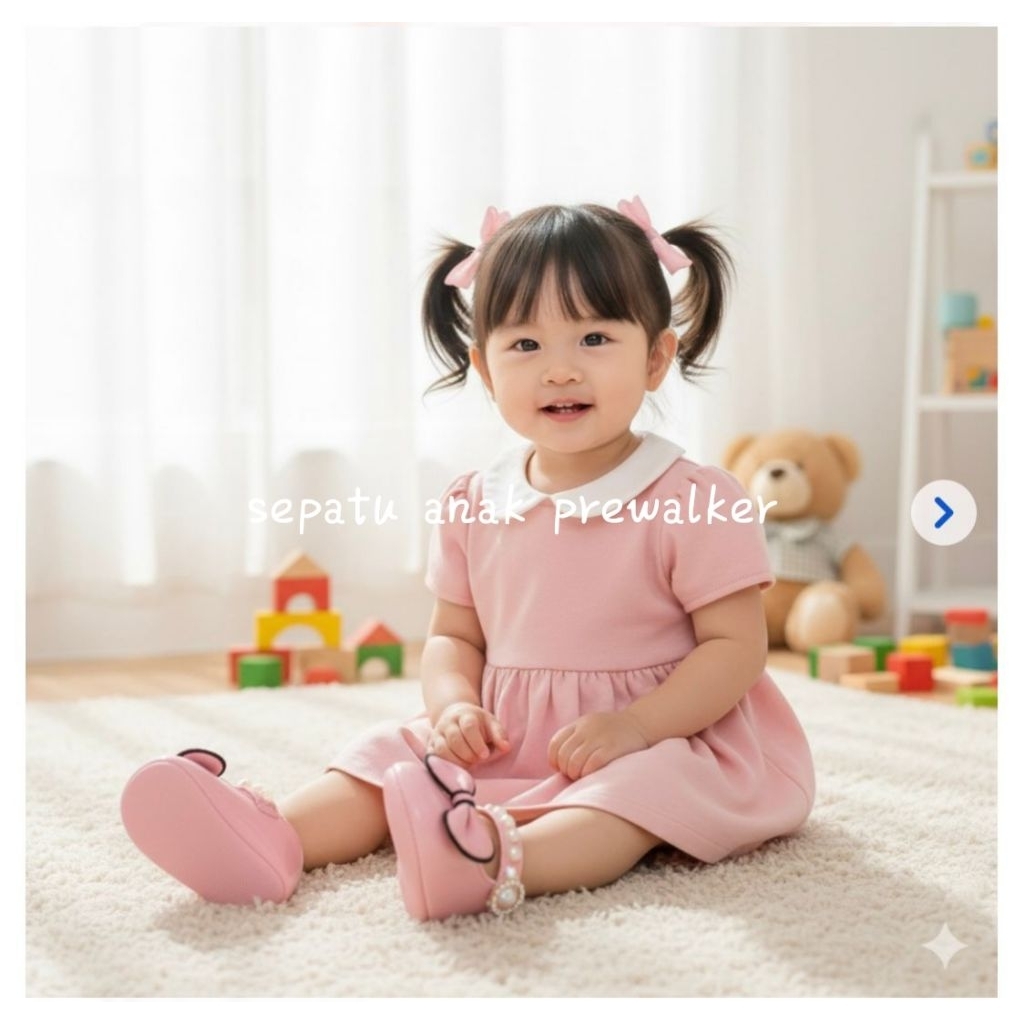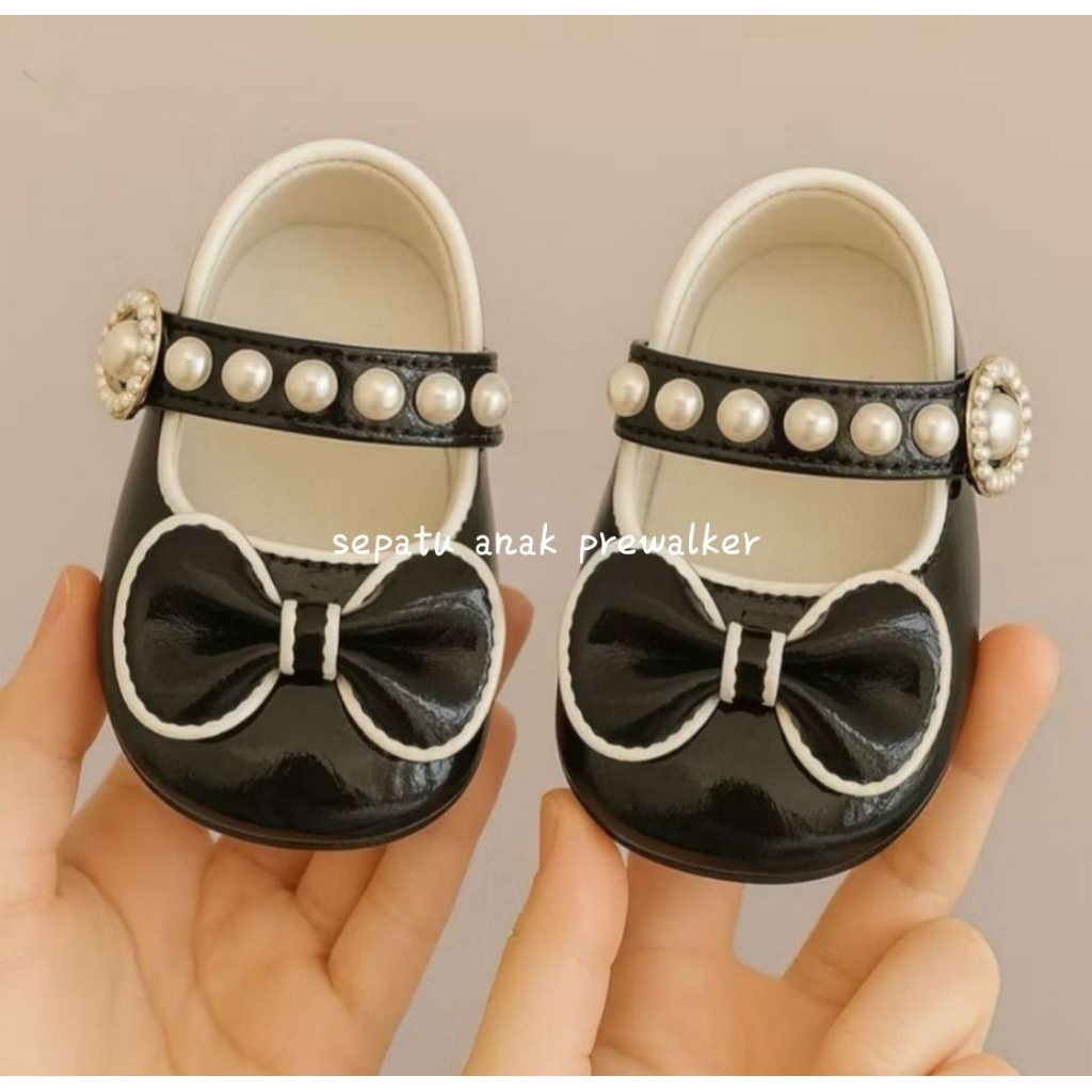 Sepatu Anak Flat Shoes Usia 1-12Bulan Baby Shoes Prewalker Model Pita Mutiara