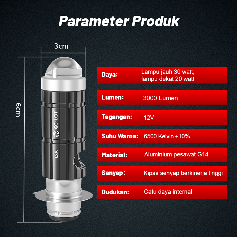 Lampu Depan Motor LED CCLOT MP5A H6 30 Watt RGB D3 Laser Cut Off Fan Cooling Garansi 2 Tahun