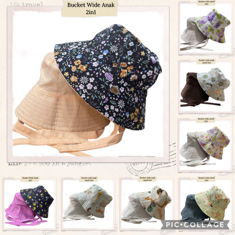 Bucket Wide Anak Dua Sisi Size M - Bucket Selebgram Anak - Bucket Wide Dua Sisi - Bucket Wide Anak Motif