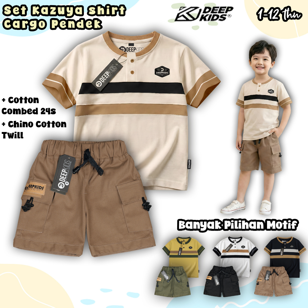 Setelan Anak Laki Laki Kaos Kerah Kancing Celana Cargo Pendek Bahan Cotton Combed 24S & Cotton Twill Usia 1 2 3 4 5 6 7