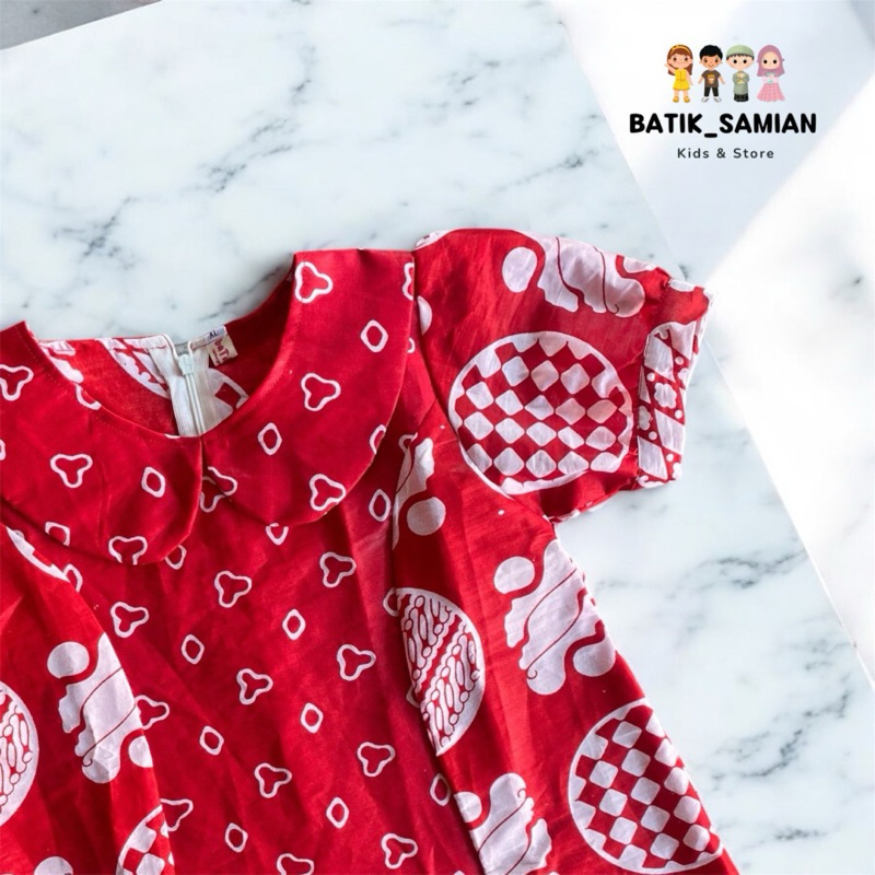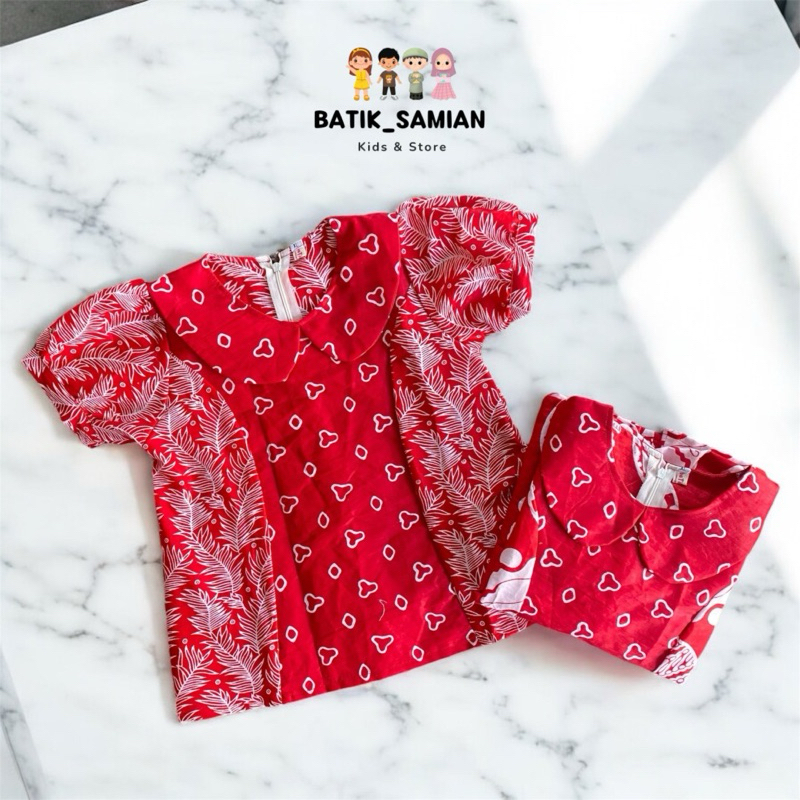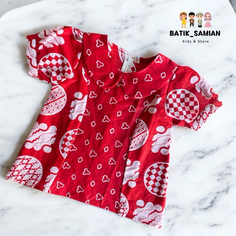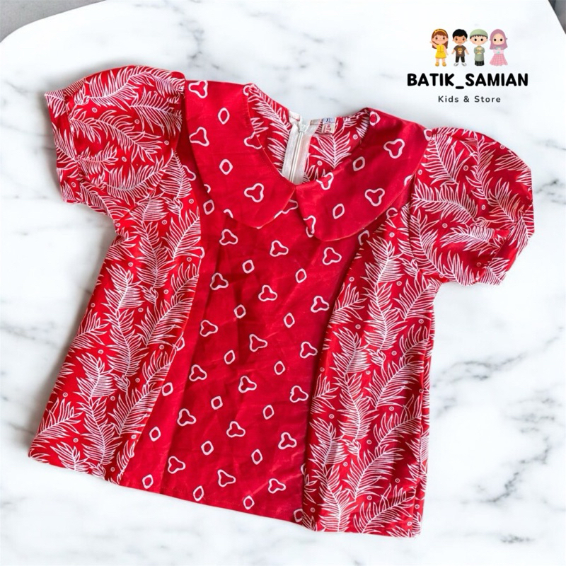 Atasan Batik Anak Perempuan Kombinasi Merah Putih Bahan Katun Model Kekinian Menyerap Keringat