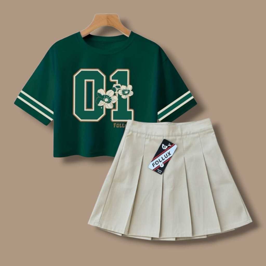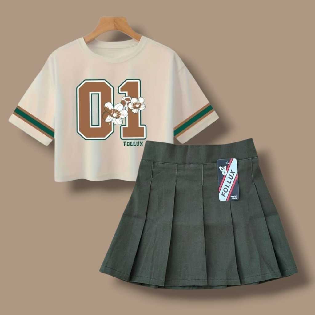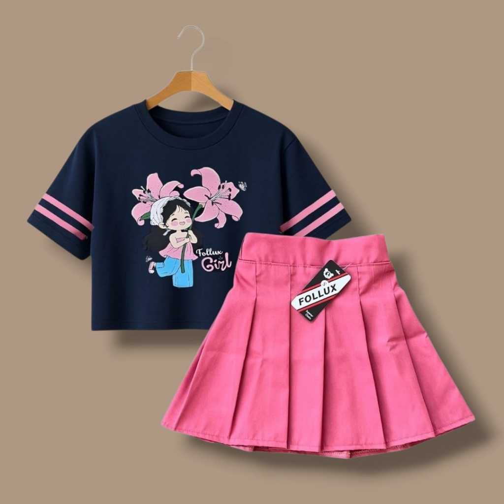Follux - Setelan Anak Perempuan Croptop Mini Skirt Rempel Pleated Usia 1-10 Tahun