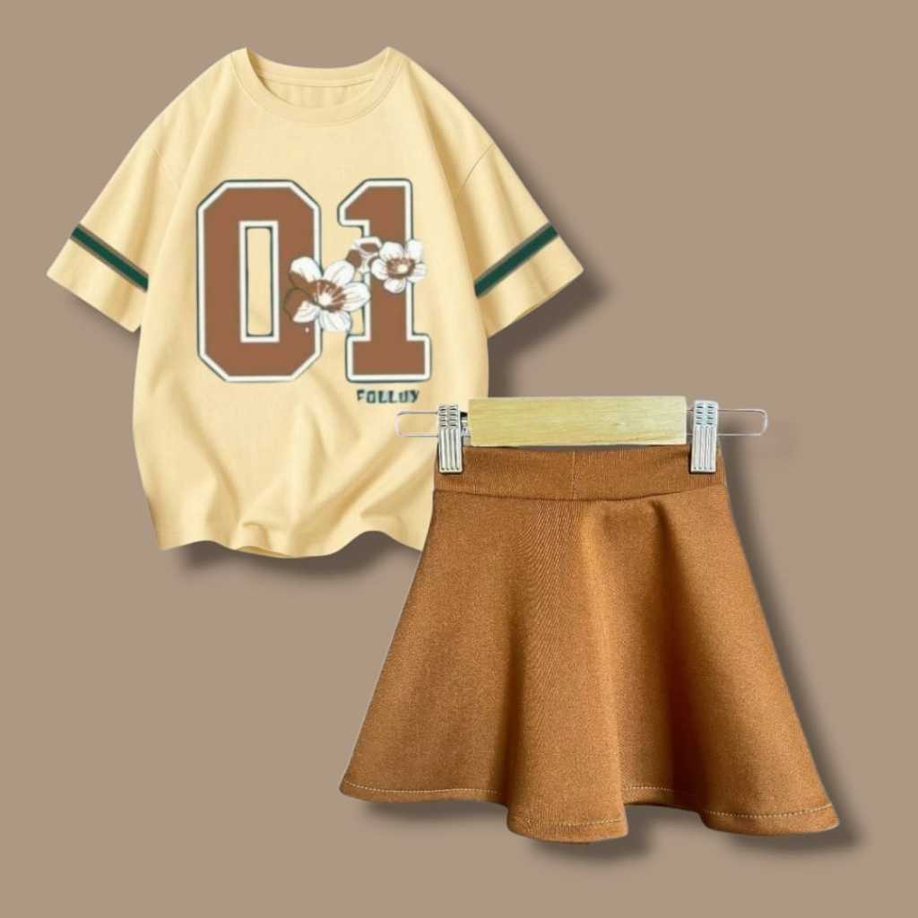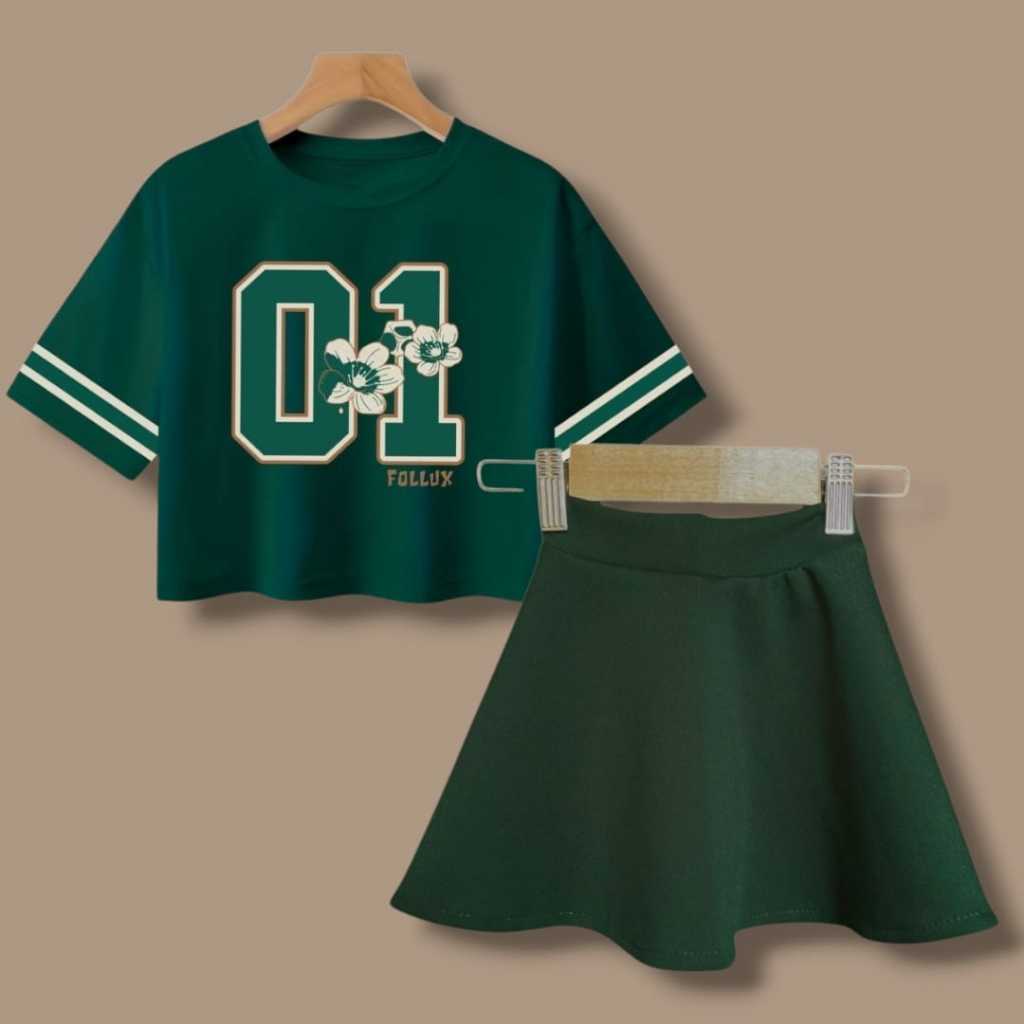 Follux - Setelan Anak Perempuan Rok Scuba Oversize Croptop Usia 1-10 Tahun