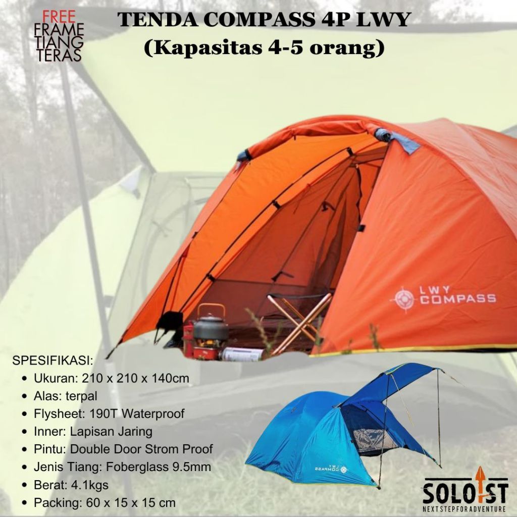 Soloist || Tenda Camping Borneo 4 Kapasitas 4-5 Orang | Tenda Camping Double Layer Lwy Compass | Tenda Kemah Outdoor Kap