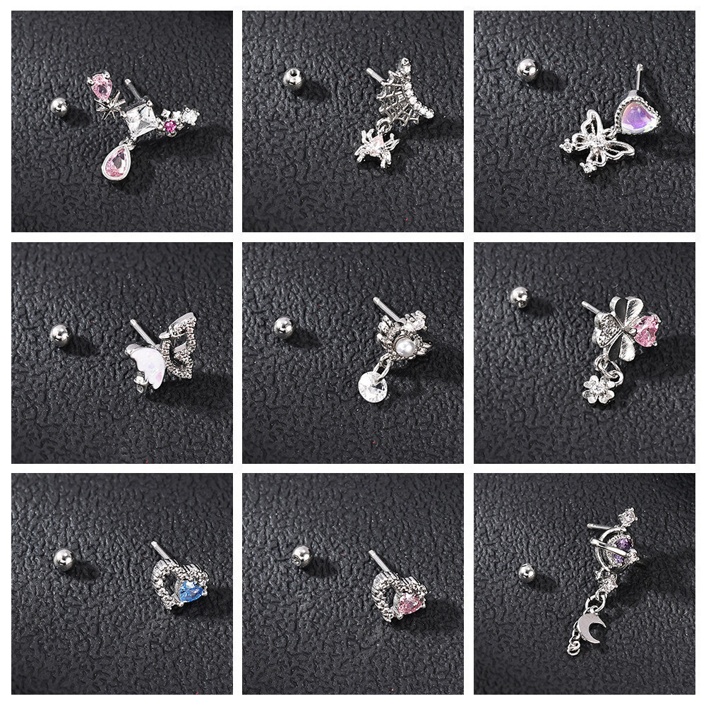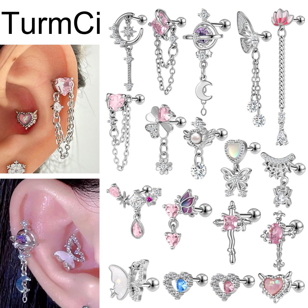 TurmCi 1 Buah Stainless Steel Anting Tindik 20G Ear Studs Crystal Stud Earrings 6mm Helix Conch Cartilage Piercing Earri