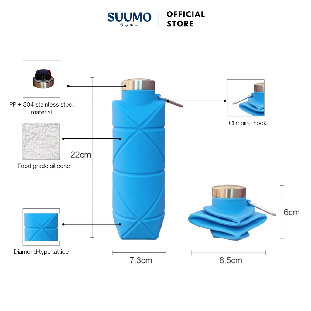 Suumo Botol Minum Olahraga Lipat Silikon 700 Ml Bpa Free Food Grade