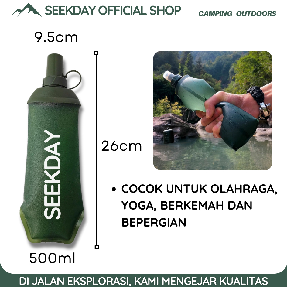 Seekday Tup Soft Flask Bpa Free Outdoor Botol Lipat Silicone Botol Minum Sport 500Ml