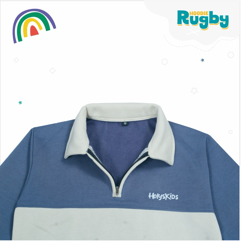 Hoodie Rugby Anak Denim Fleece Resleting Depan