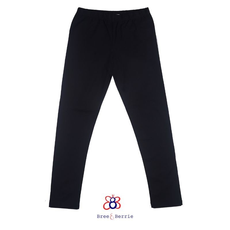 Bree & Berrie - Legging Anak Perempuan,Polos Katun Stretch Hitam Gak Nerawang-Zalina