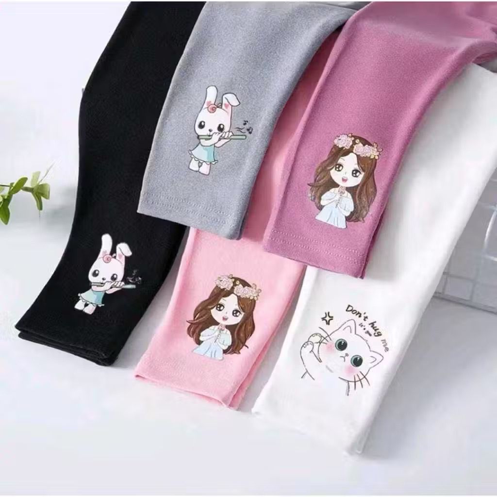 Paket Hemat 5 Pcs Legging Anak Bahan Katun Rib Spandek Motif Mix Karakte Usia 1-12 Tahun