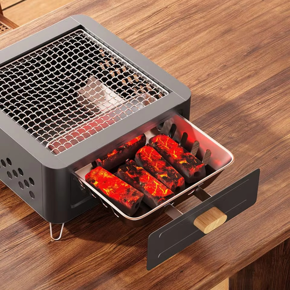 Panggangan Arang Alat Panggang Portable Bbq Sate Ikan Sosis Ayam Outdoor Grill Besi Stainless Steel Anti Lengket Desain