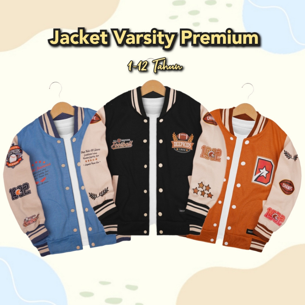 Jaket Anak Varsity Baseball Premium Bahan Cotton Fleece Tebal Untuk Anak Laki Laki / Perempuan Usia 1 2 3 4 5 6 7 8 9 10