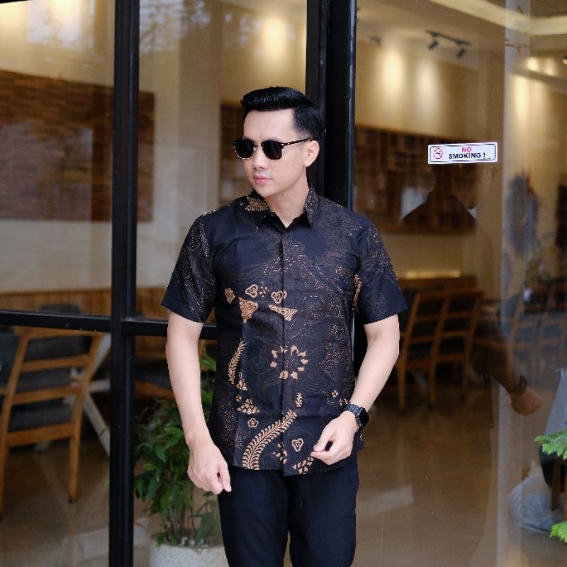 Kemeja Batik Pria Slimfit Lengan Pendek Motif Jazz Baju Batik Pria Slimfit Lengan Pendek Lapis Puring Hem Batik