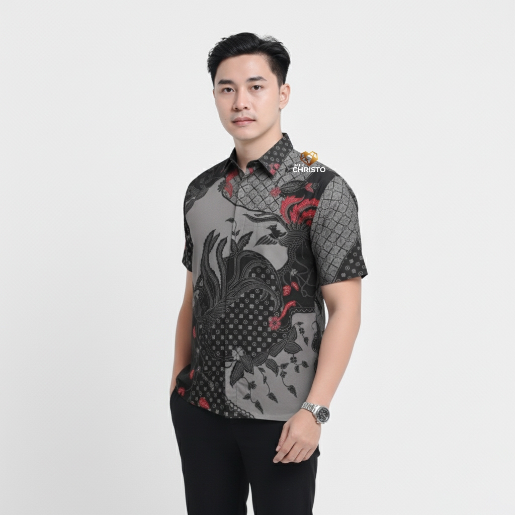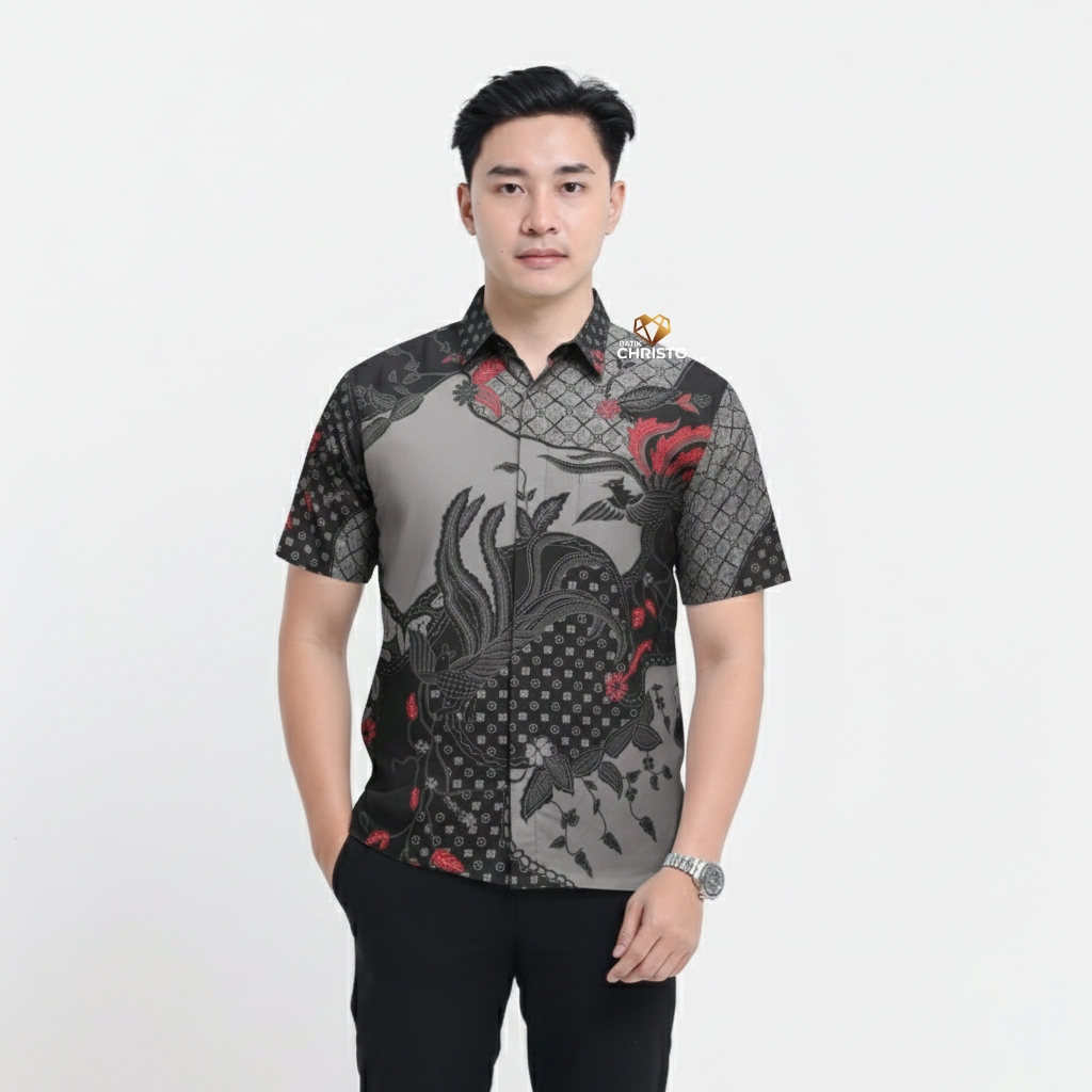 Kemeja Batik Pria Baju Lengan Pendek Slimfit Lapis Furing Batik Christo 0107 Bahan Katun Premium Elegan Motif Formal War