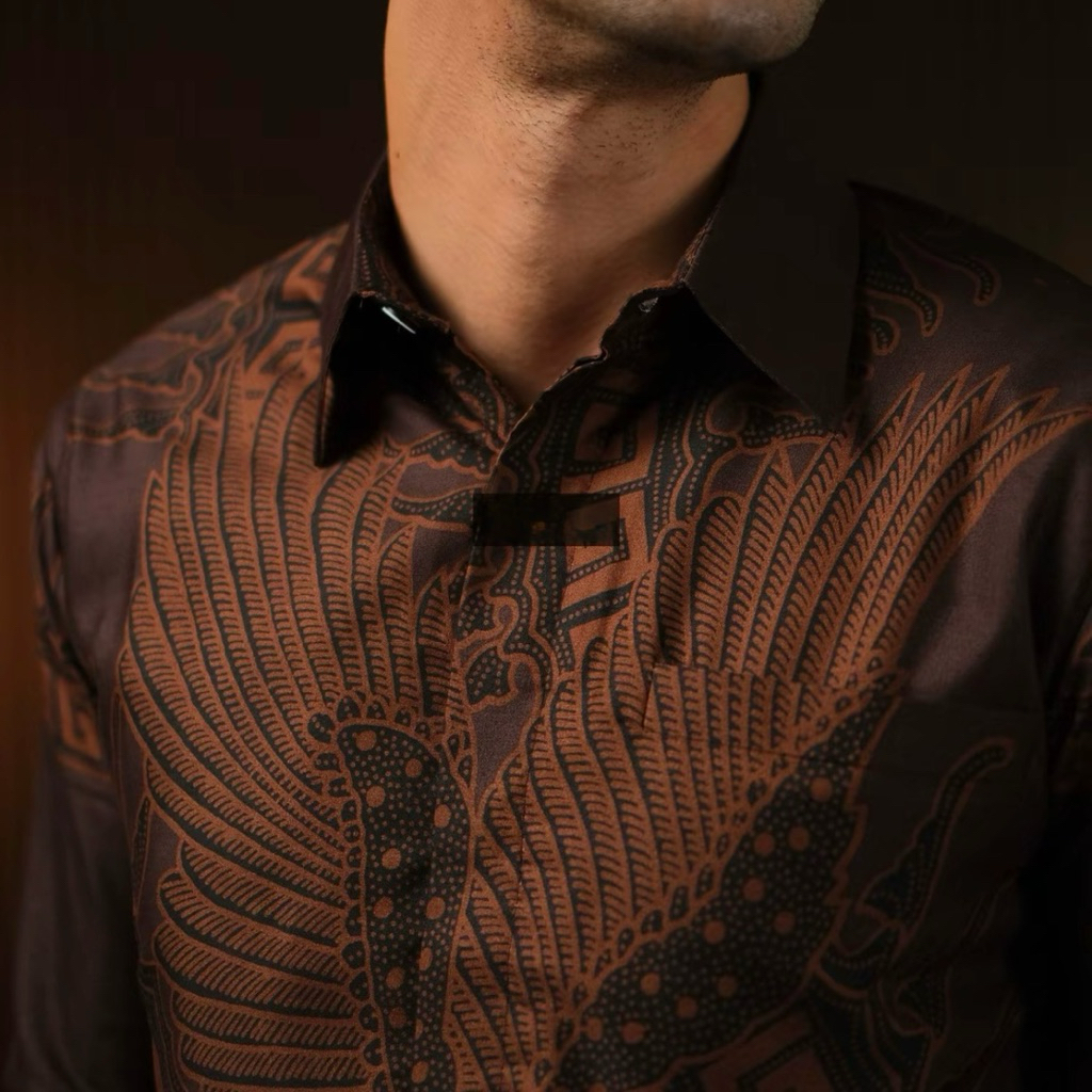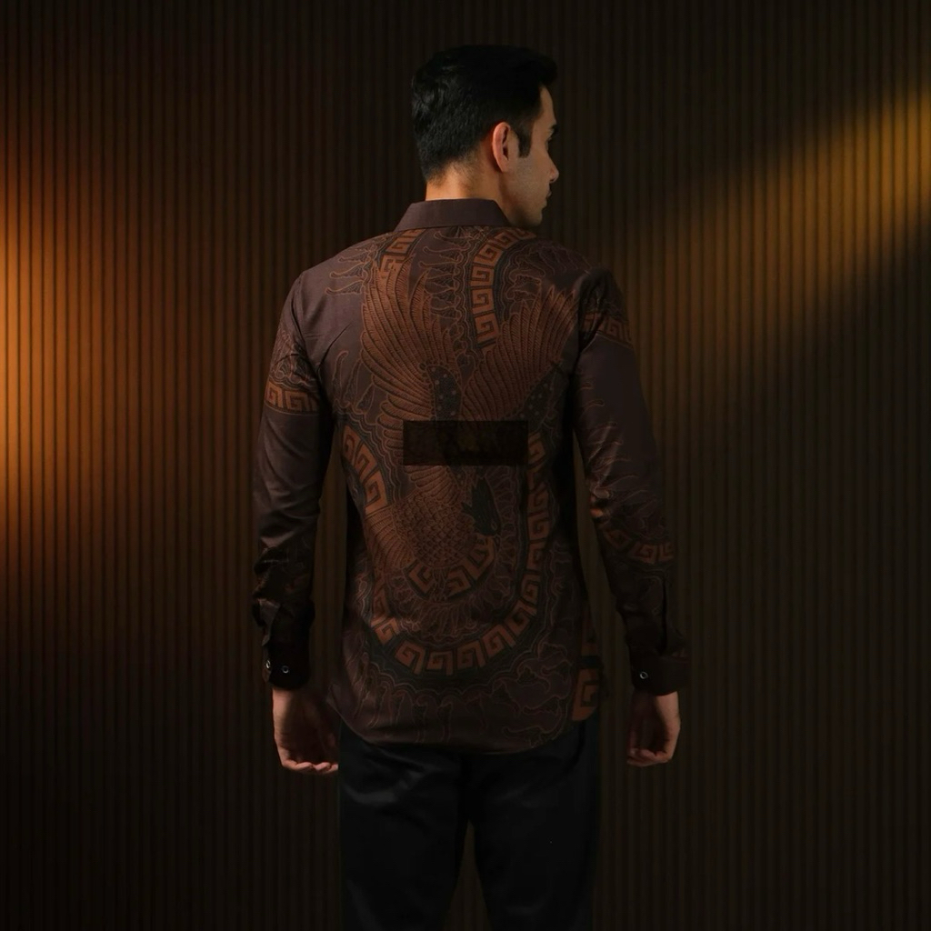 Ajisaka Mahogani Kemeja Batik Pria Lengan Panjang Furing Full Katun Polimicro Slimfit