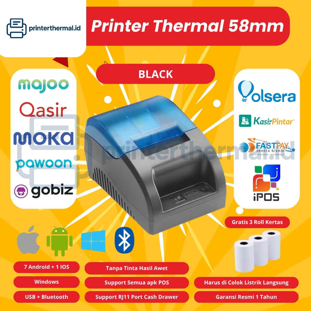 Free 3Roll Printer Bluetooth Kertas Portable Mini Printer Thermal 2 Inch Wireless Usb Receipt Bill Ticket Printer With
