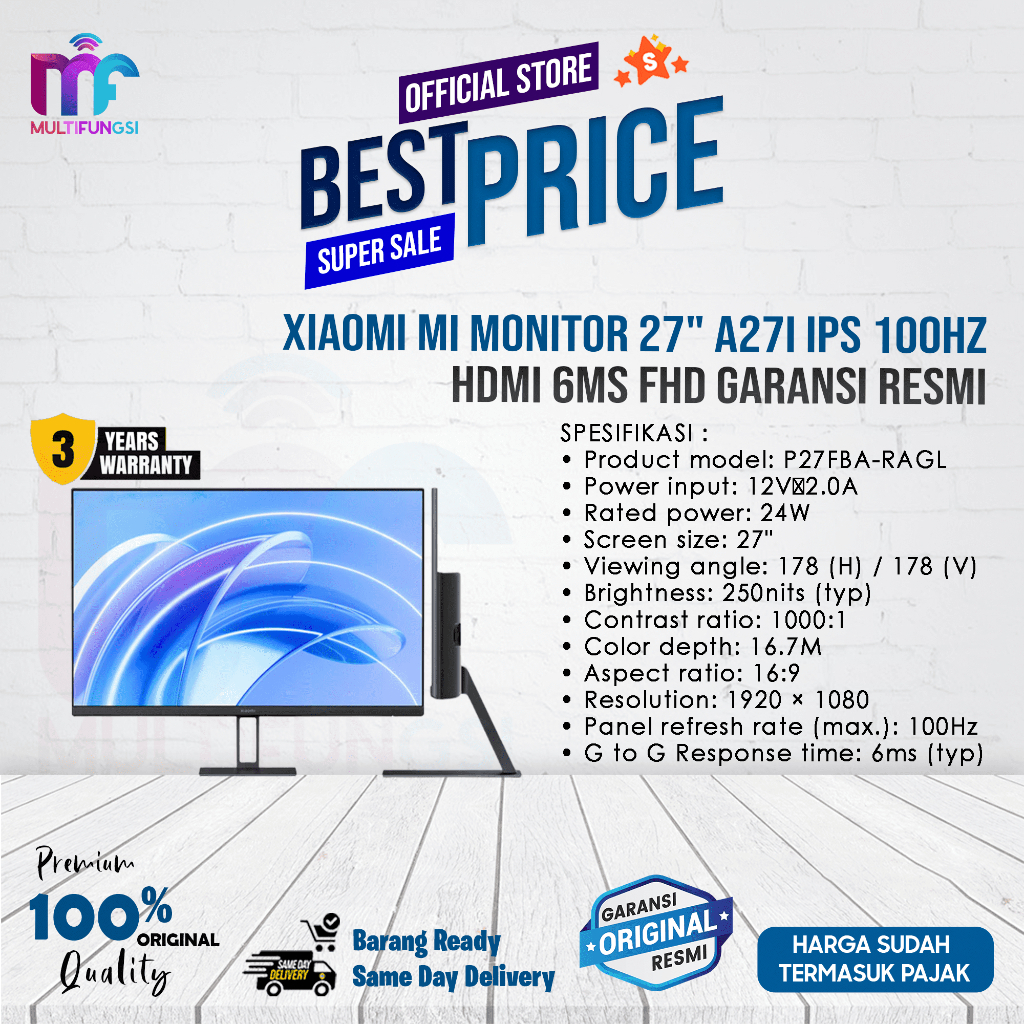 Xiaomi Mi Monitor 27" A27i IPS 100Hz FHD HDMI 6Ms 1080p Terjangkau