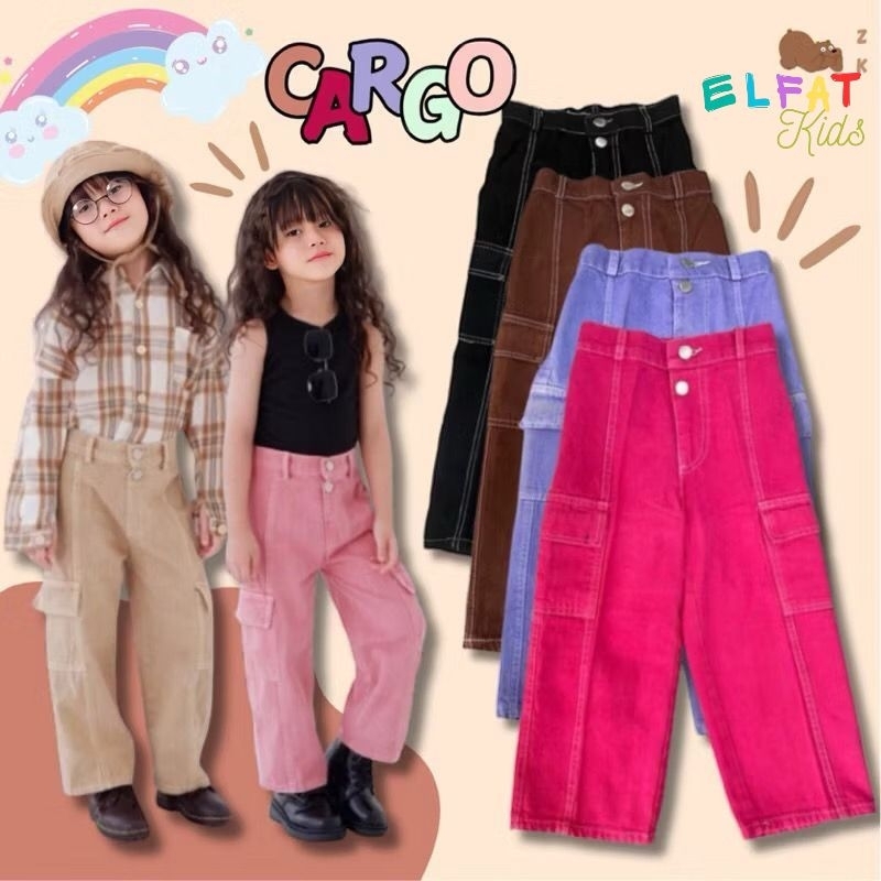 Cargo Pants Anak Celana Jeans Kulot Cargo Fashion Anak Perempuan 2-7 Tahun