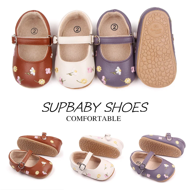 Sepatu Bayi Perempuan Embroidery Flower Usia 0 - 12 Bulan Anti Slip, Sepatu Bayi Perempuan Lucu