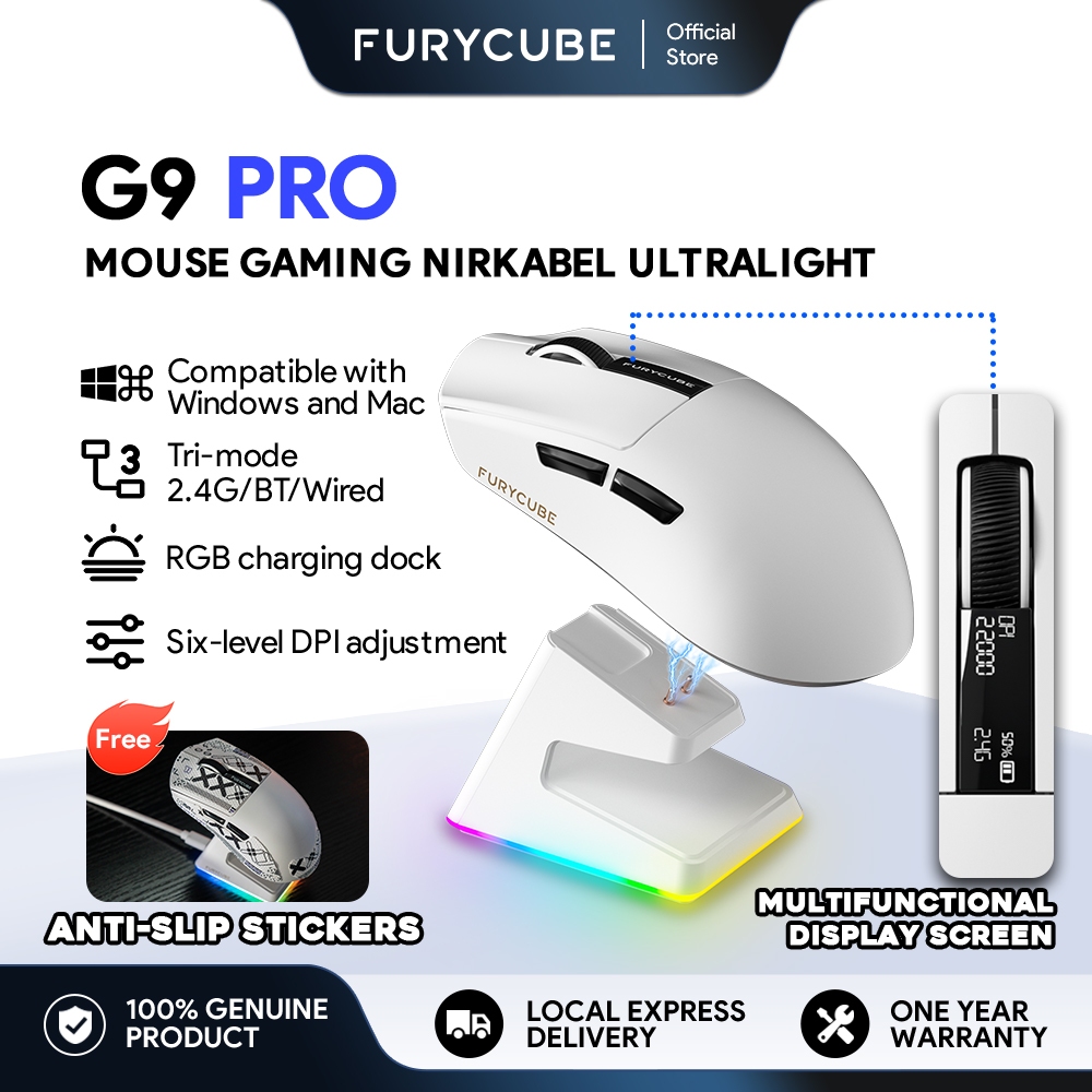 Furycube G9 Gaming Mouse Wireless Bluetooth High Dpi Paw3311 Rgb Mice Black White Mice With Base Compatible With Both La