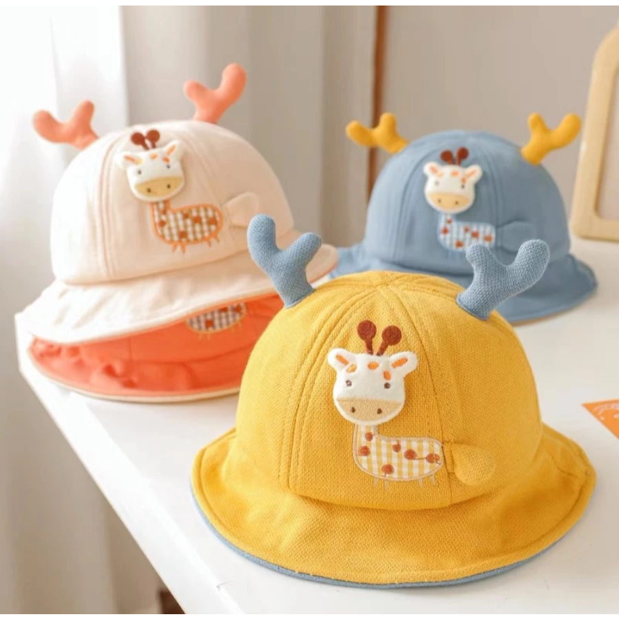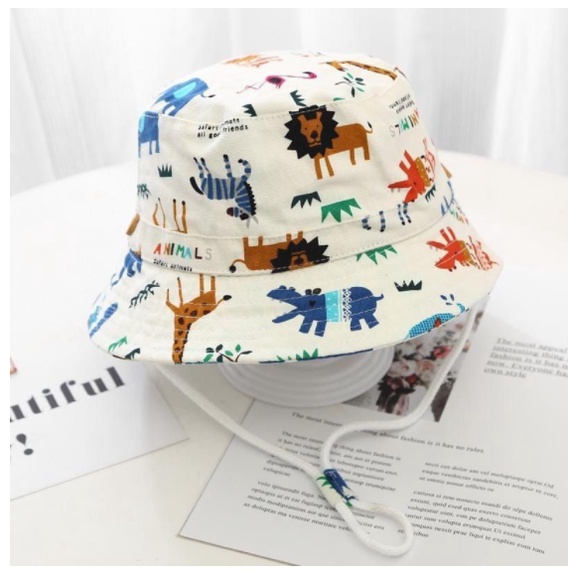 High Quality Bucket Hat Safari Animal Star Crown Hoase Waffle Koala Pom Lion Sit Polos Topi Pantai Bayi 0 - 4