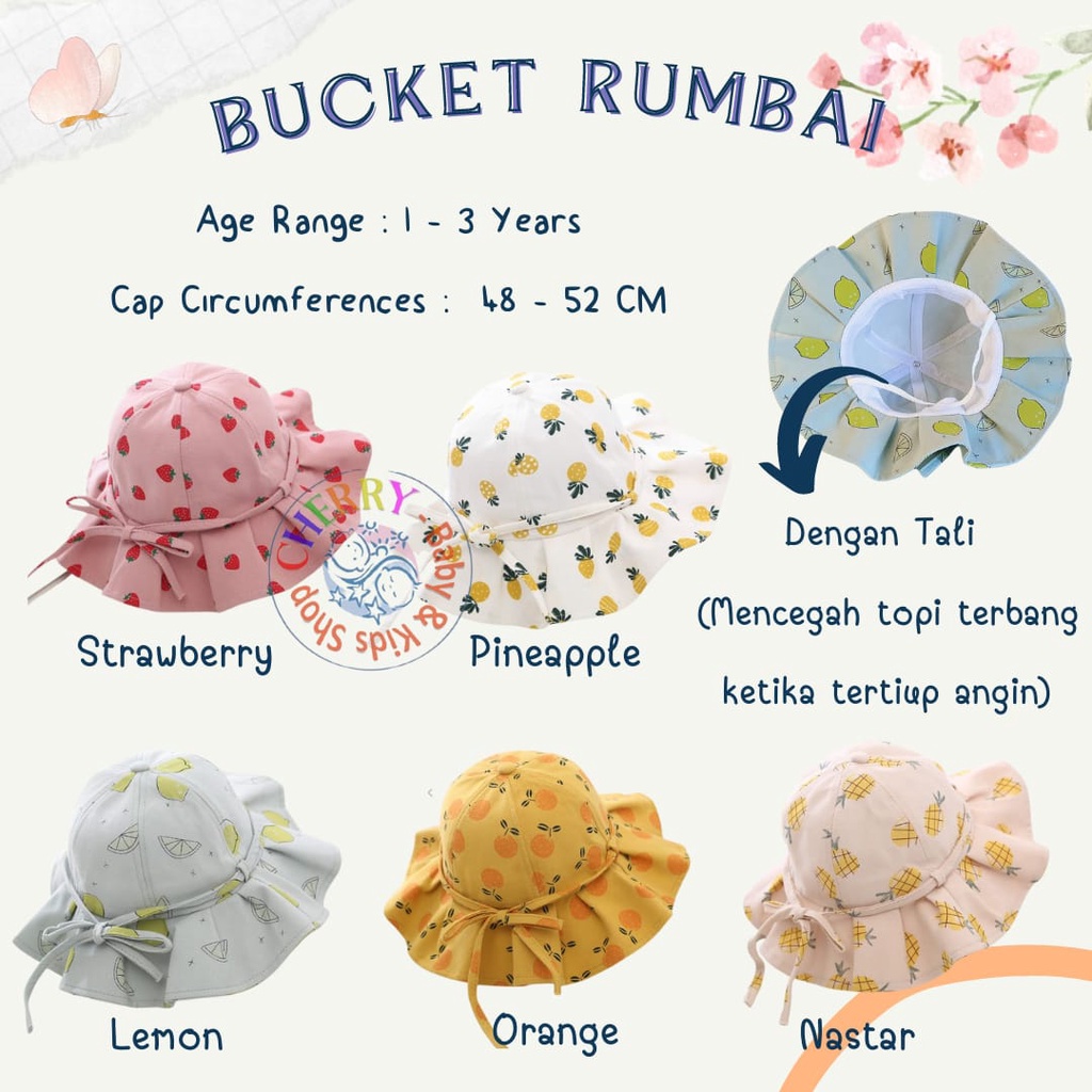 Topi Rumbai Buah Bayi Anak Perempuan Summer Hat Bucket Fruit Smile Love Ribbit Heart Cozy Happy Boneka Cbks Vc