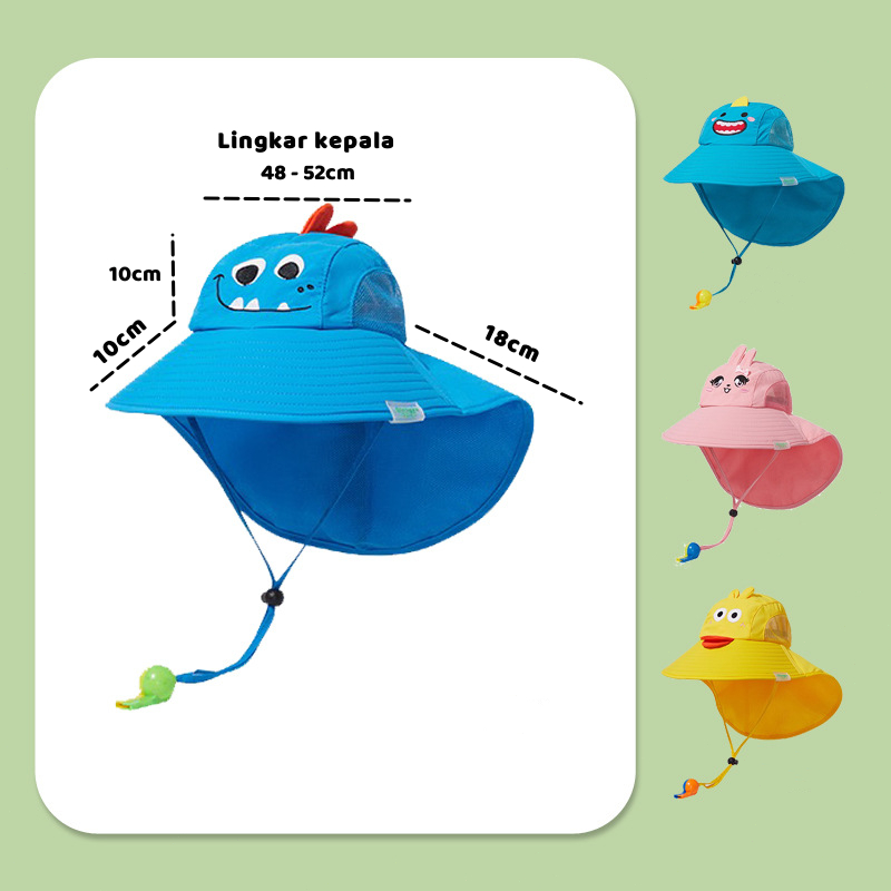 Topi Bucket Anak Visor Lipat Anti Sinar Uv Topi Pantai Tepi Lebar Kartun Anti Matahari Anti Panas Outdoor Hat Model Dino