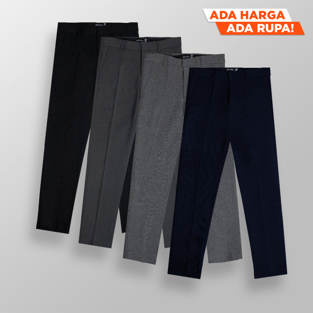 Basic Trousers Celana Bahan Formal Pria Hitam, Dark Grey, Light Grey, Navy | Celana Bah