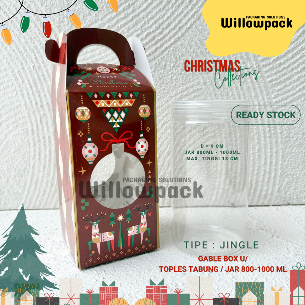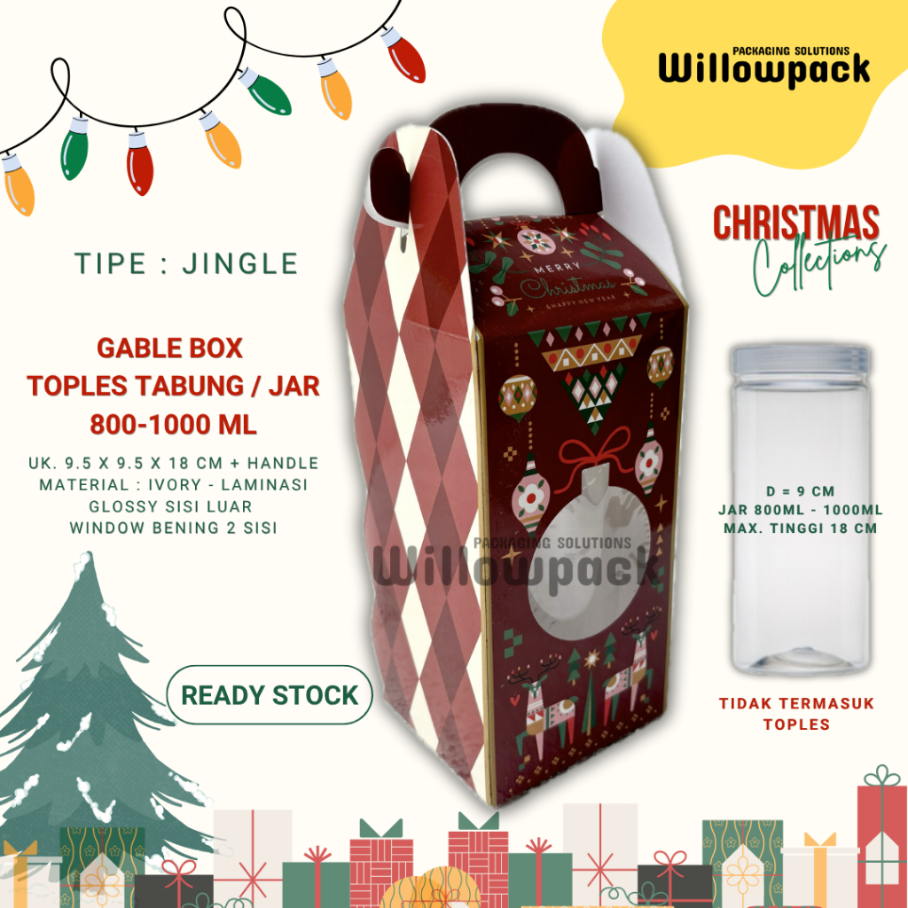 Dus Natal Toples Tabung Isi 1 800Ml 1000Ml 600 Ml Gable Box Christmas Premium Hampers Kue Kering