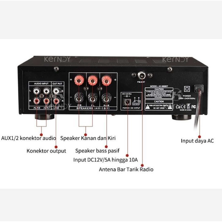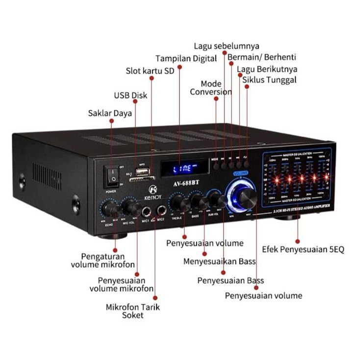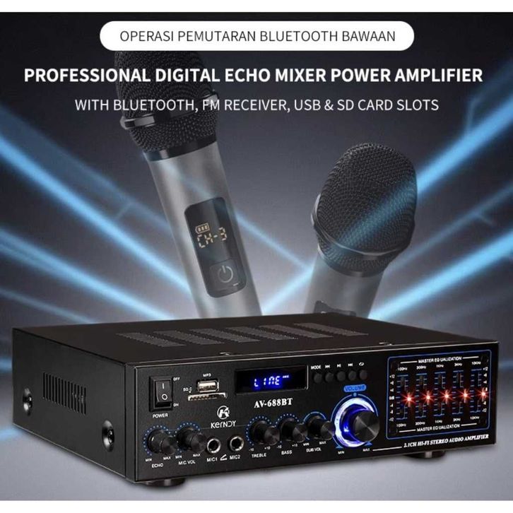 Amplifier Kerndy Bluethooth 5.3 Audio EQ AV-688BT Channel 2.1 Full Bass SUBWOFER Amplifier Karaoke Home Theater AV688BT