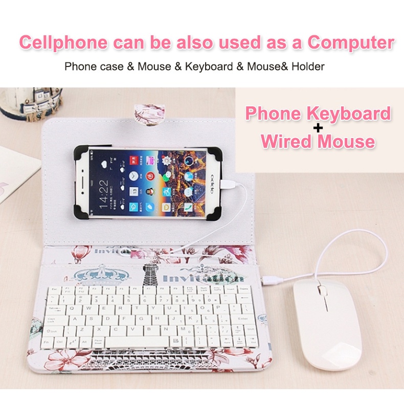 3 In1 Ponsel Keyboard Mouse Set Kabel Tipe-C Micro Usb Kulit Cover Stand Holder Untuk Bermain Game Huawei Xiaomi