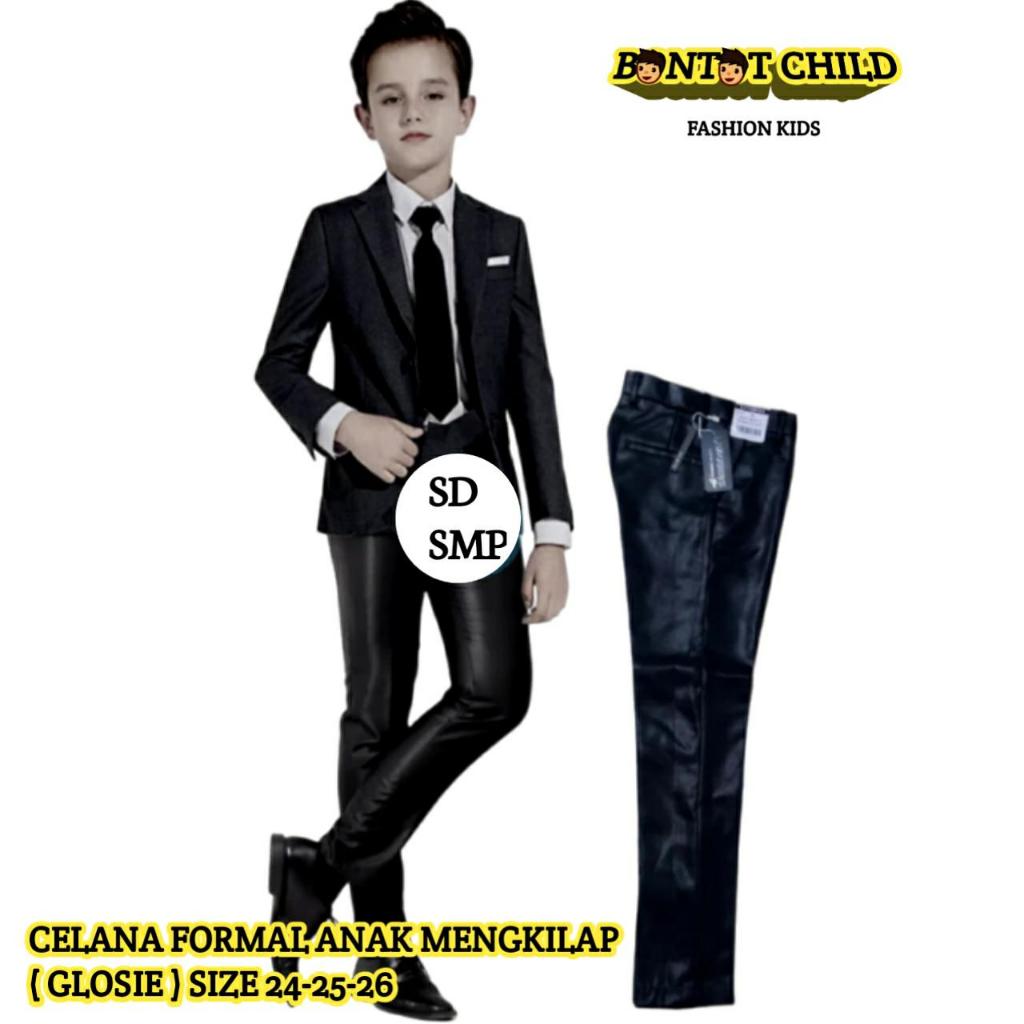 Celana Formal Bahan Metalik Anak Usia 7-12 Tahun Sekolah Resmi