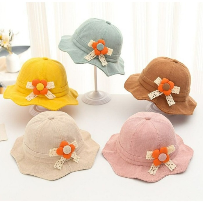 Topi Bucket Smile Love 1-4 Tahun Topi Bucket Heart Smile Flower Pita Anak Perempuan High Quality Cbks Vc