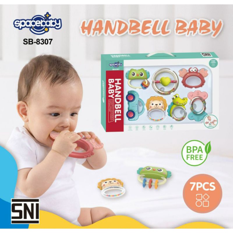 Siyafree Bubblewrap Handbell Gigitan Bayi Spacebaby Rattle Teether Set Isi 5 Sb 8305 8306 8307 Gigitan Bayi Spacebaby S