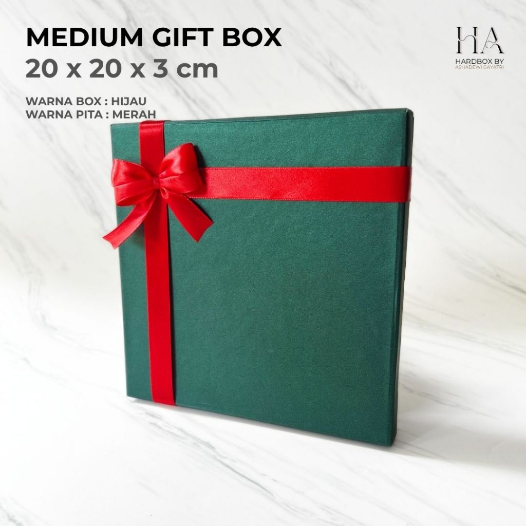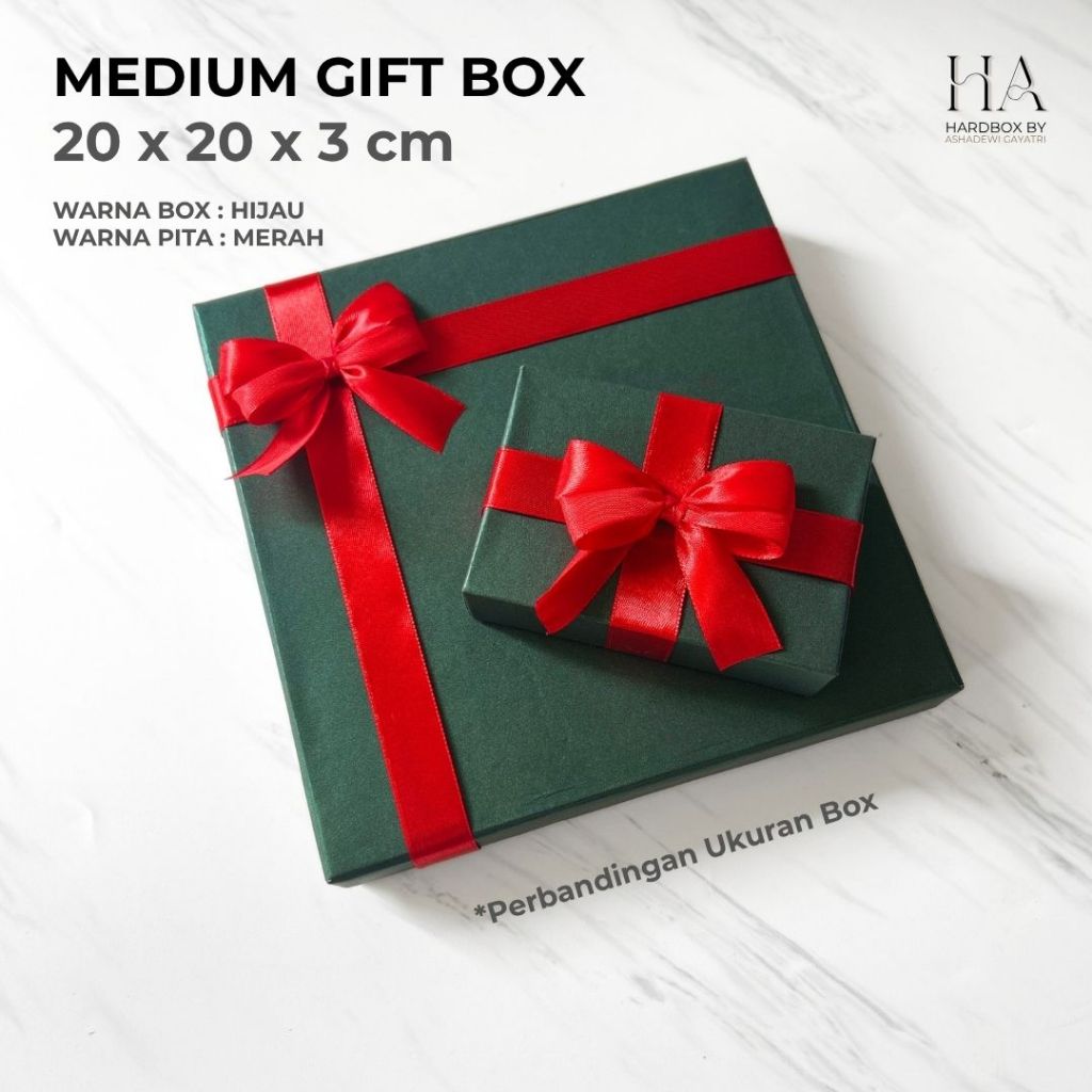 Hardbox By Ashadewi - Medium Gift Box - Box Hijau Dengan Pita Merah - Kotak Kado Natal