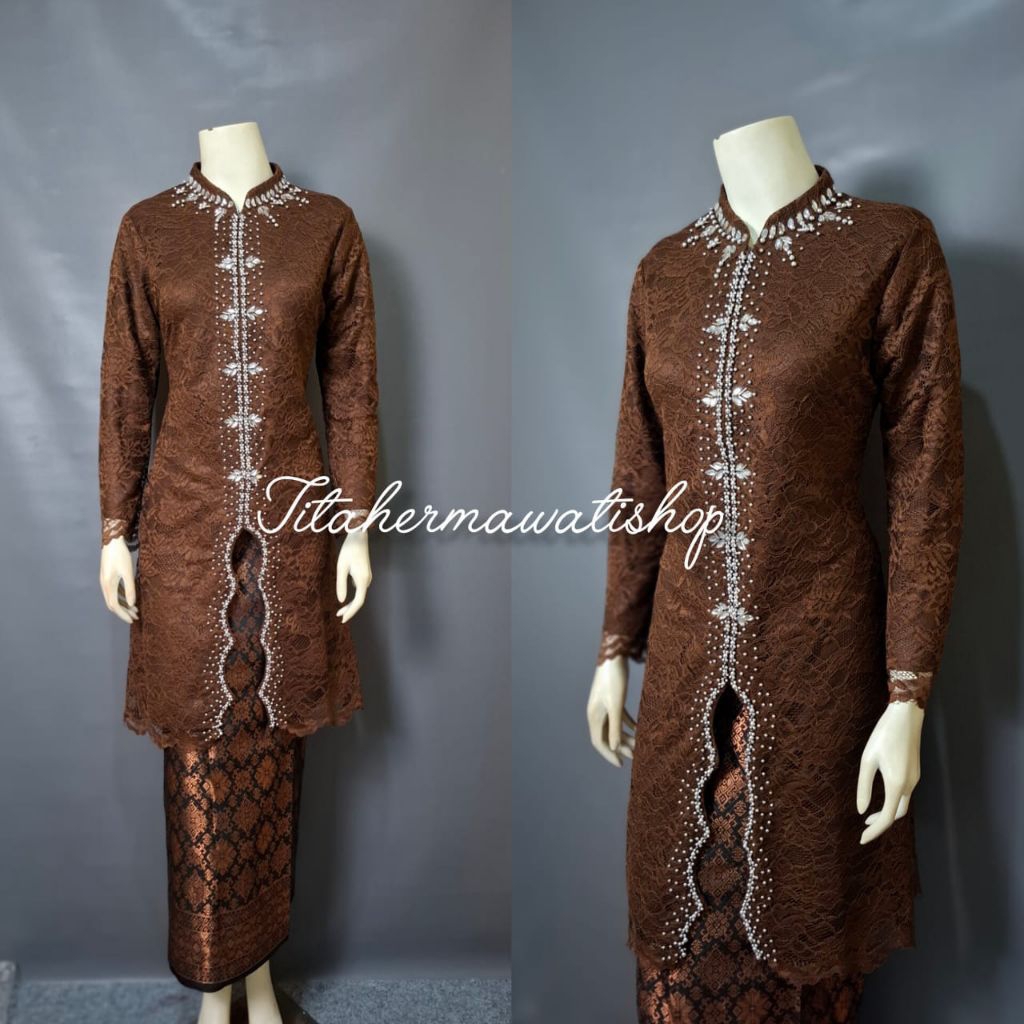 Set Kebaya Tunik Zigzag Payet Mutiara Stelan Rok Songket Lilit || Kebaya Tunik Brokat || Kebaya Mode