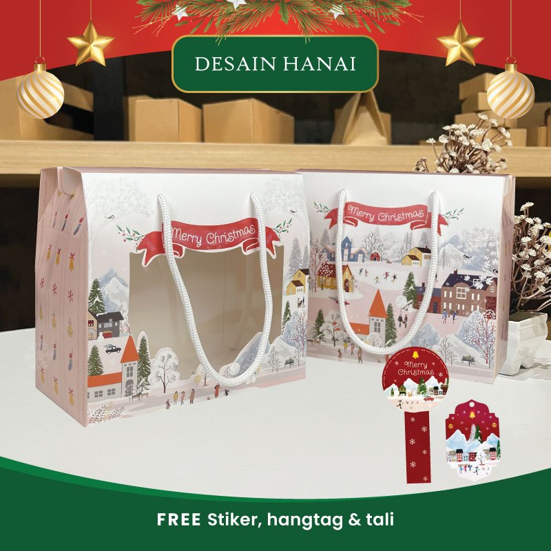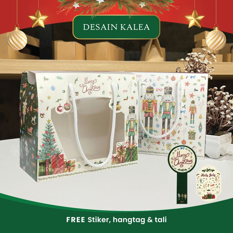 Gable Box Natal Tali Jinjing Box Hampers Kue Kering Natal Toples Tabung P19Cm X L10Cm X T17Cm Muat Top