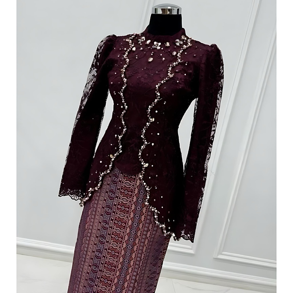 Kebaya Wanita Lace Berfuring Baju Formal Kondangan, Lamaran Wisuda Material Premium
