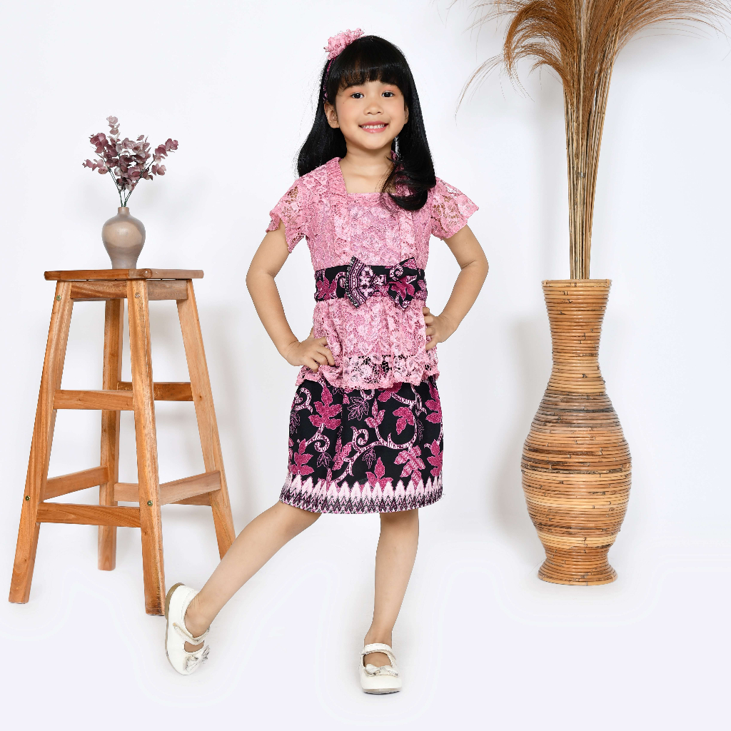 Setelan Kebaya Brukat Modern Batik Maya Kid Kebaya Anak Kutu Baru Pesta Kondangan
