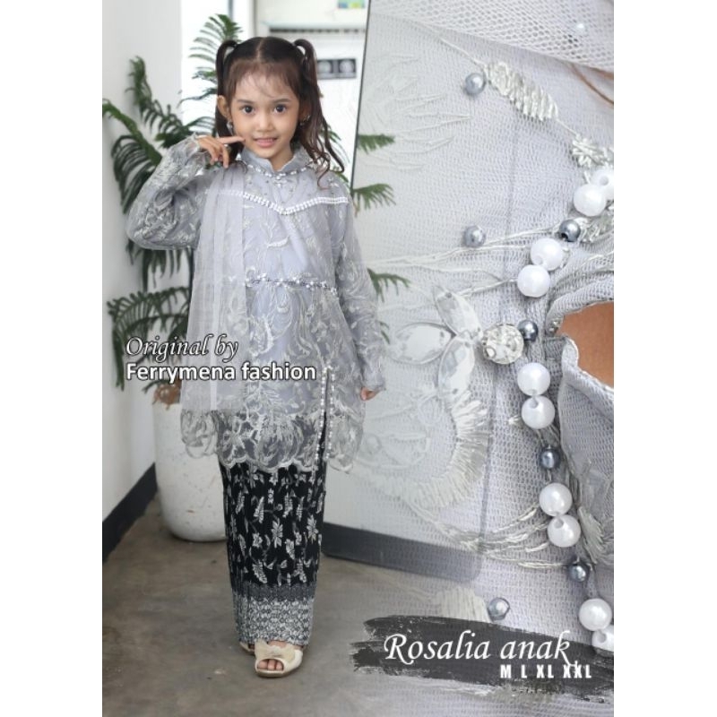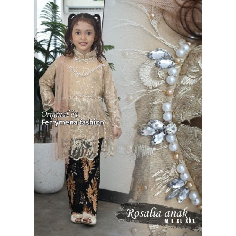 Kebaya Cantik One Set Baju Kebaya Anak Rosalia Selendang Tille Payet Kebaya Anak Umur 5 - 12 Tahun Kebaya Wisuda Anak