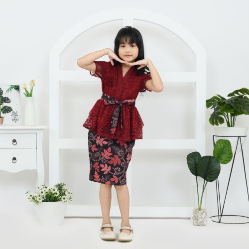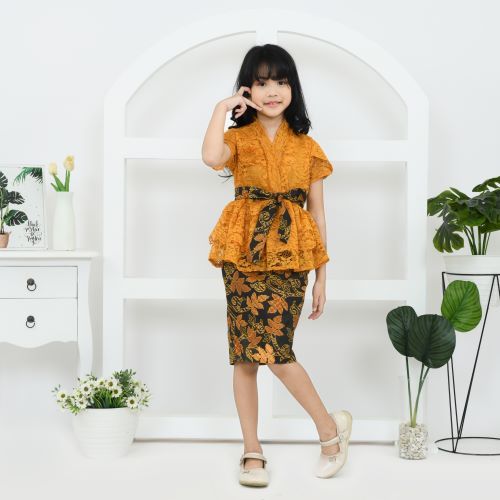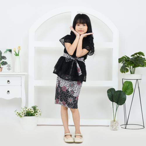 Setelan Kebaya Anak Brukat Batik Modern Freya Kid Kebaya Kutu Baru Anak Pesta Kondangan