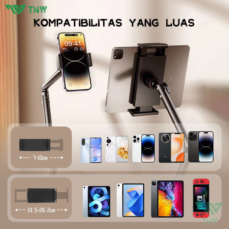 Tnw H25 Stand Holder Handphone Tablet Meja Overhead Phone Stand Flexible Rotate 360 Phone Holder Lazypod Stand Aluminium