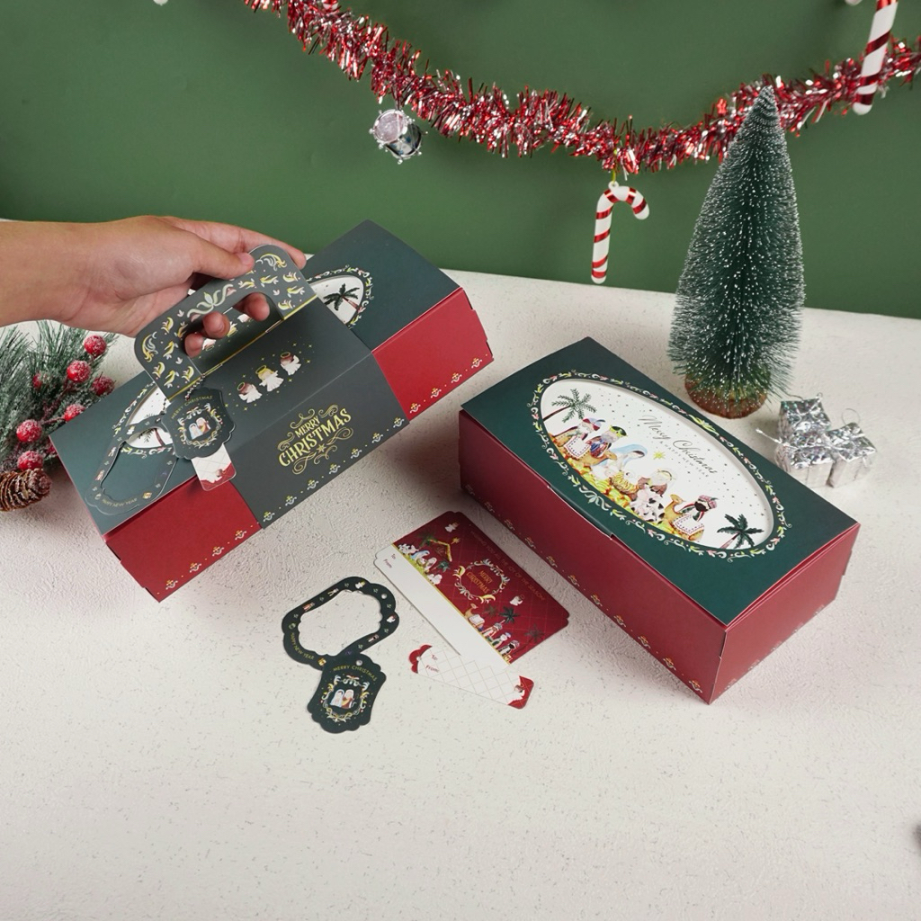 5 Set Box Tenteng Natal Elena 22X11.5X7Cm 25X12.5X6Cm Box Dus Kue Kering Natal Christmas Box