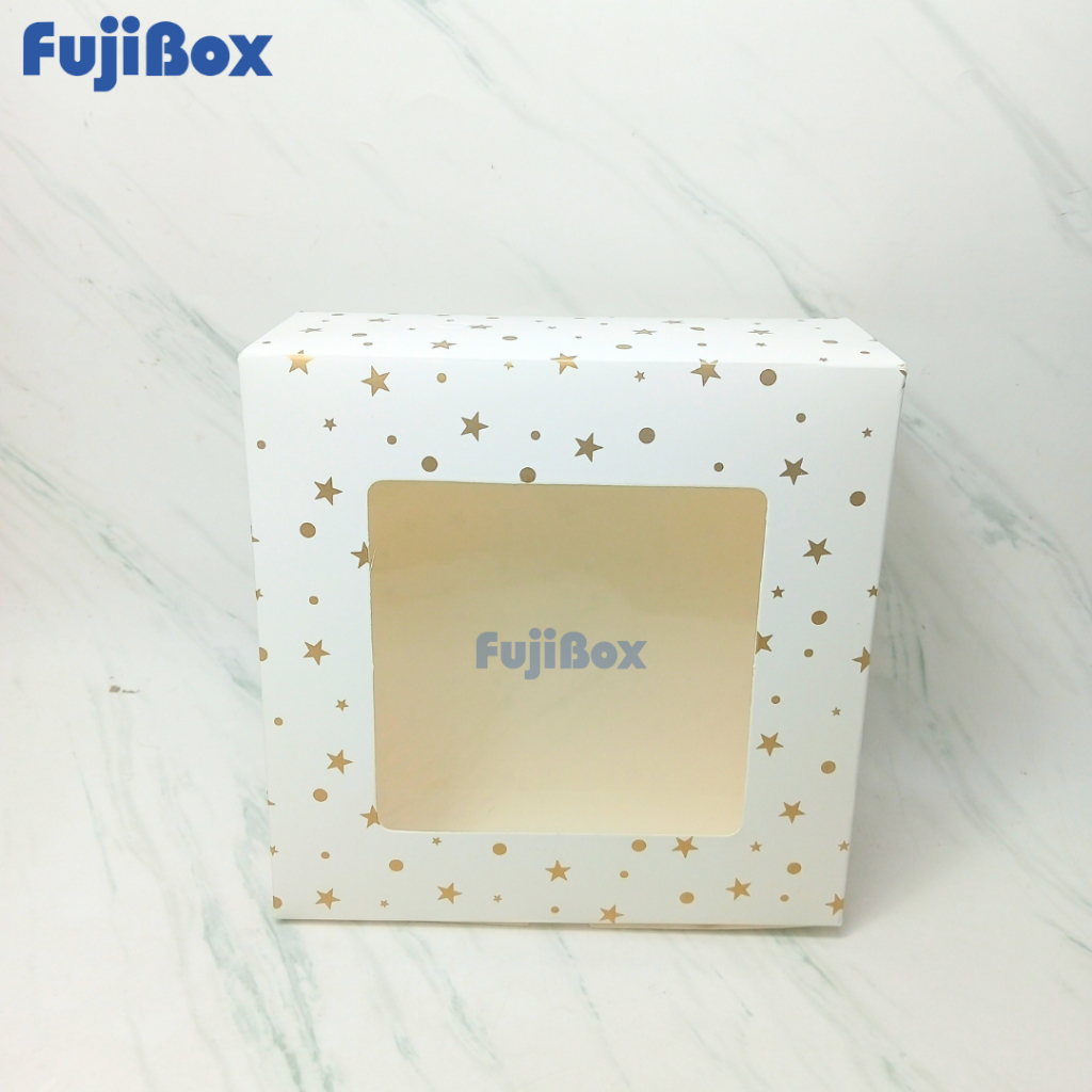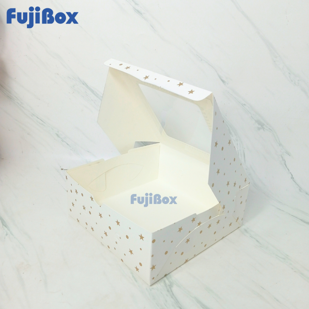 Fuji Box Dus Kotak Kue Ivory Motif Polkadot Bintang Ema5 22 Cm X 22 Cm X 10 Cm Putih Ivory Premium Jendela