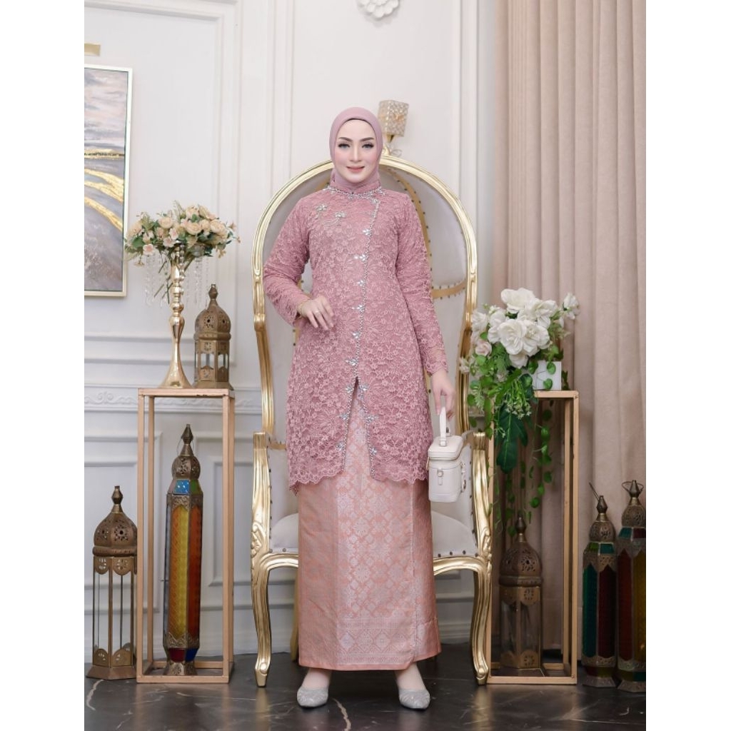 Set Tunik Janggan Rok Songket - Kebaya Jumbo Fit Ld 130 - Kebaya Modern - Set Kebaya Wisuda - Kebaya Brukat Terbaru