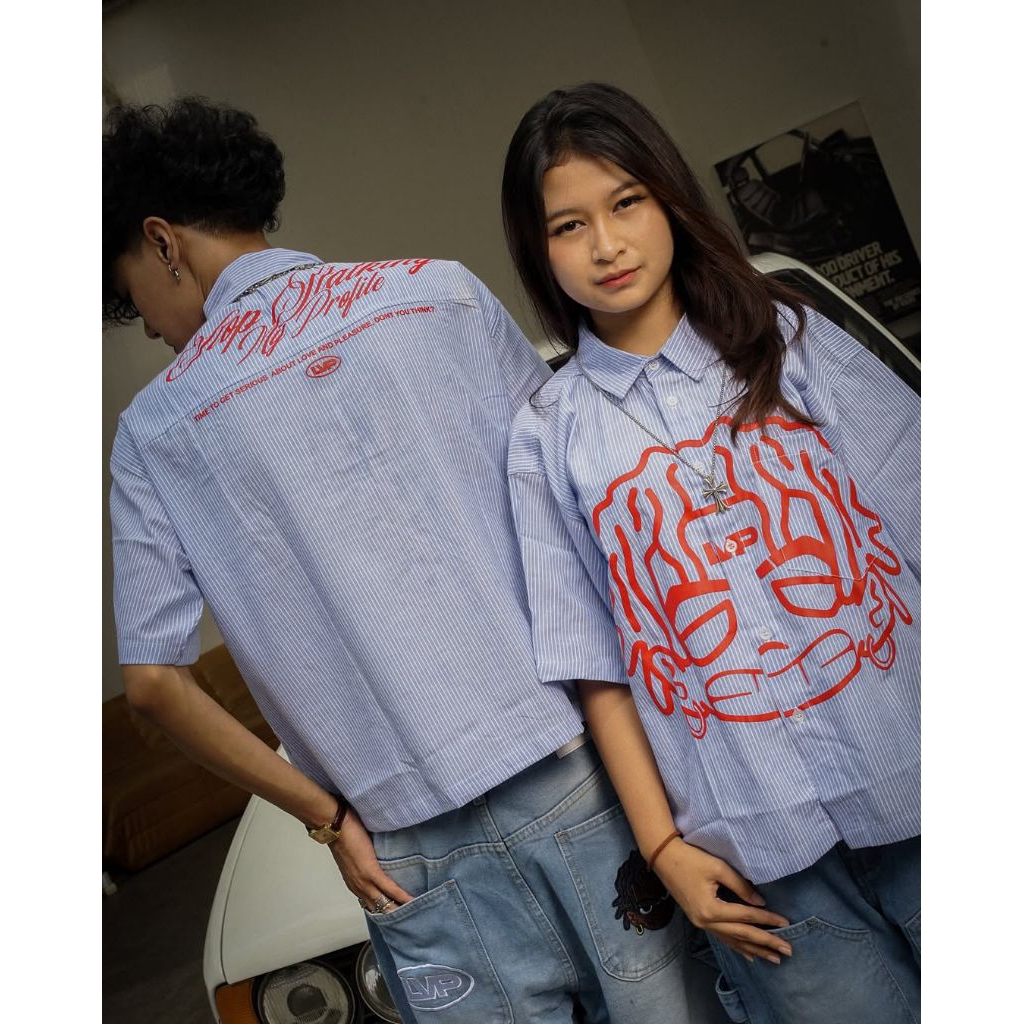 LVP - Workshirt Boxy Katun Garis-Garis M-XL